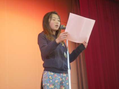 3月3日の全校朝会では、校長先生からひなまつりについてのお話と、健康に過ごすために努力をした児童の表彰、そして本を使った調べ学習のコンクールの表彰がありました。健康に過ごすために努力をした6年生から、それぞれの健康でいるために気を付けていることの発表もありました。