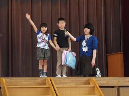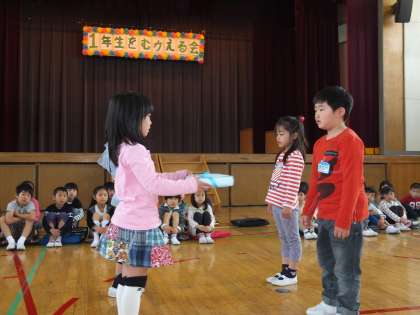 4月17日(木)、1年生を迎える会が行われました。1年生は、4年生に名前を呼ばれたら、大きな声で返事をして入場することができました。