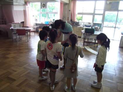 今日は1年生だけで学校探検をしました。2年生にもらった地図を見ながら、チェックポイントの教室をまわりました。日ごろあまり入る機会のない部屋に入ることができ、とても楽しそうでした。