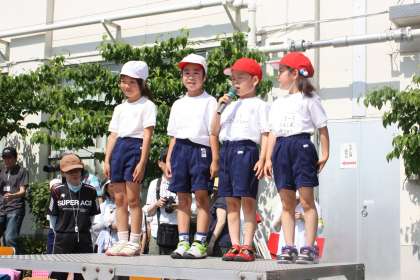 児童代表の言葉は、1年生4人が初めての運動会で頑張りたいことや楽しみにしている気持ちを堂々と言ってくれました。