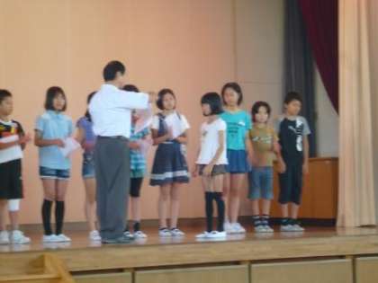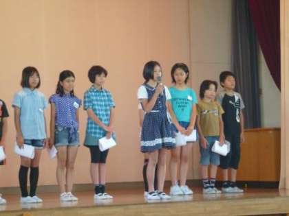 今日の全校朝会では、歯のポスターで入賞した児童と健康な歯の児童の表彰が行われました。6年生の代表児童からは、健康な歯を保つためのこつを話してもらいました。