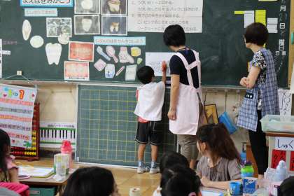 6月21日(土)、1年生を対象に親子歯磨きをしました。染め出し液で磨き残しのあったところを確認し、磨き方を学びました。歯を磨いた後は、ツルツルして気持ちがいいと笑顔で答えてくれました。これからも歯を大切にしてほしいと思います。