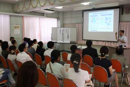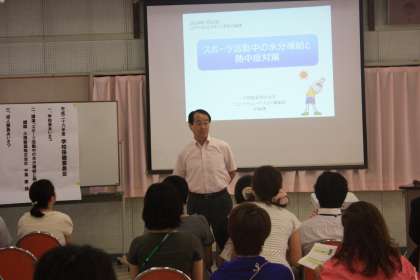 7月10日(木)に学校保健委員会を行いました。学校医、学校薬剤師、保護者、教職員が参加し、大塚製薬株式会社の方に「スポーツ活動中の水分補給と熱中症対策」についてご講演いただきました。熱中症の起こり方や予防法、応急処置など貴重なお話を聞くことができました。