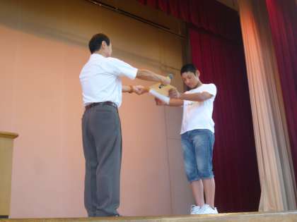 9月1日(月)、全校朝会がありました。校長先生からは、夏休みに野球の大会で優秀な記録を残した児童の表彰がありました。