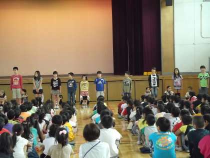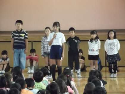 10月8日(水)の児童集会は、前期・後期代表委員会の交代式でした。前期代表委員会の人たちは、がんばったことを一言ずつ発表しました。最後に6年生が代表して代表委員を経験して感じたことを発表してくれました。その後、ハイタッチで前期と後期の代表委員会の人が交代し、後期代表委員会の人たちの紹介をしました。後期の委員会活動、がんばってほしいです。