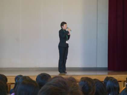 今日は副校長先生から、26日(日)に行われた大杉まつりについてのお話がありました。ブラスバンドのパレード、大杉ソーラン、大杉カンフーなど、児童の頑張ったお話をしてくれました。