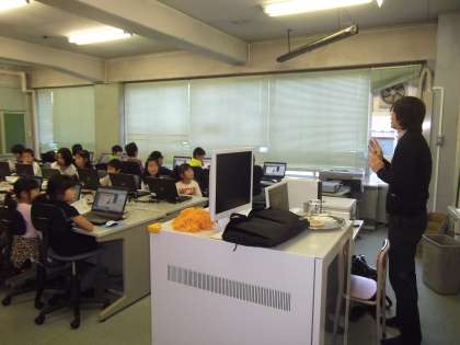 10月29日(水)に講師がいらして、パソコンの授業を行いました。保護者の方に展覧会の招待状を作りました。自分の名前や作品名、工夫したところを書きました。昨年度習った、クリックやダブルクリックなどの技を使い、すてきな招待状を作ることができました。パンフレットと一緒にお渡ししますので、楽しみにしていてください。