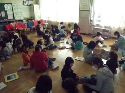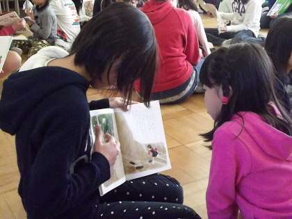 1月31日(土)、2月5日(木)に6年生が1年生へ読み聞かせを行いました。最初は緊張気味に話を聞いていた1年生ですが、お話に夢中になるにつれて6年生との距離も近くなっていました。