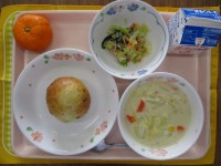 手作りウィンナーパンコーンクリームスープこまツナサラダみかん牛乳