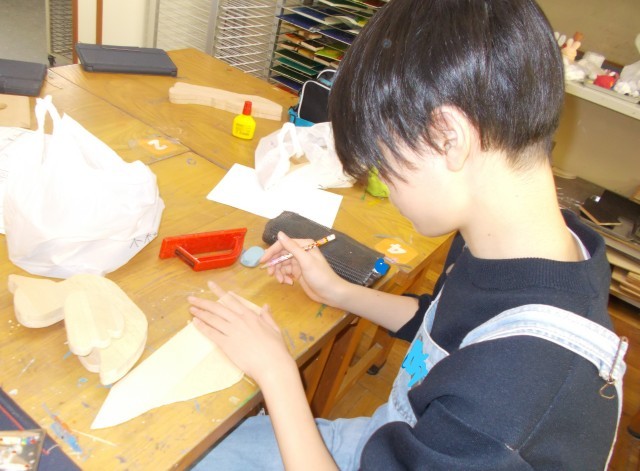 1枚の板を切って、自分の作りたいものを作っていました。おにぎり、カルガモ、サッカ...