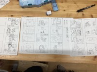 給食を好き嫌いなく食べてもらうために、ポスターや劇台本の作成をしました。