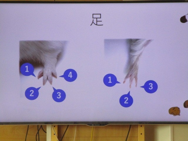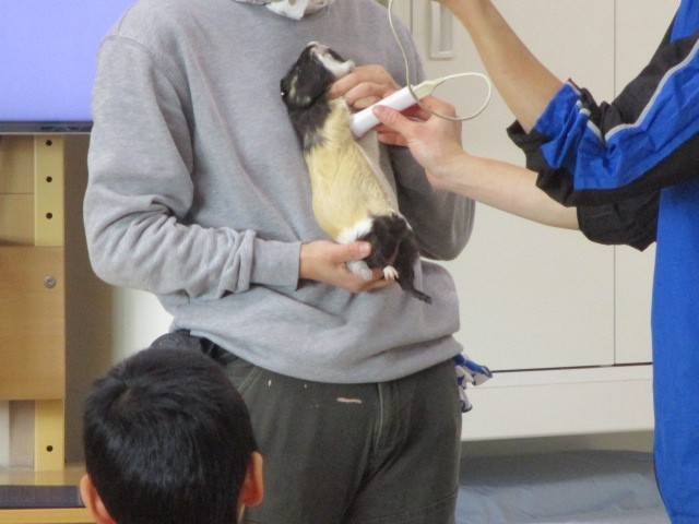 クイズをしながらモルモットの体のつくりを勉強したり、心臓の音を聞いたりして貴重な体験ができました。