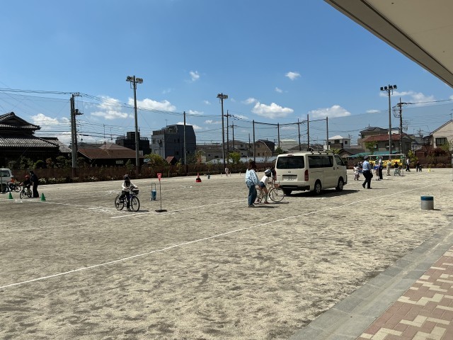 教室で交通ルールを学習したり、校庭で自転車に乗る練習をしたりしました。