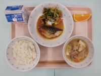 3月10日の献立は、・ごはん・さばのごまだれ焼き・菜の花の和え物・のっぺい汁・清...