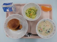 3月13日の献立は、・フィッシュバーガー・コールスロー・クラムチャウダー・せとか...