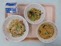 3月11日の献立は、・スパゲッティナポリタン・野菜たっぷりスープ・こまつな米粉ケ...