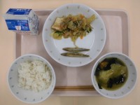 4月24日の献立は、・ごはん・牛乳・生揚げと豚肉のみそ炒め・きびなごのカレー揚げ...