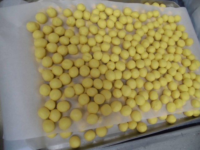 今日の白玉は給食室で1つ1つていねいに丸めて作りました。