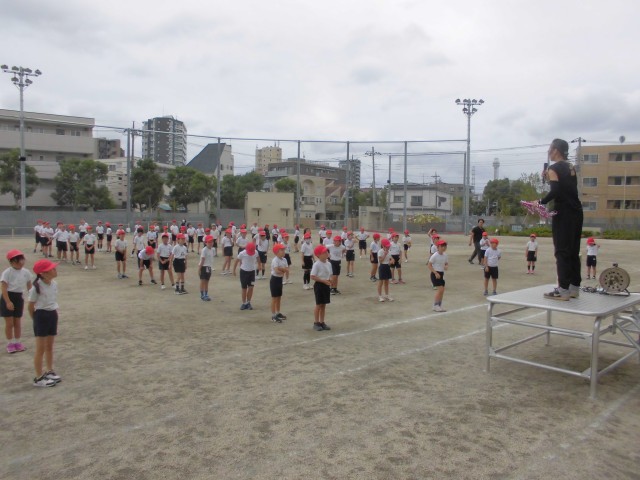 今日は隊形移動の確認の練習を校庭でしました。初めての校庭での練習でした。うまくいったところもあればまだまだ練習しなければいけないところもあります。もっと練習してより良い表現ができるようにがんばりましょう!