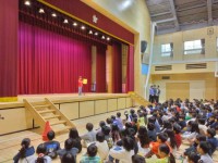 入場で使用する曲は歌詞がありません。音をよく聴いて、友達と心を一つに旗をそろえます。