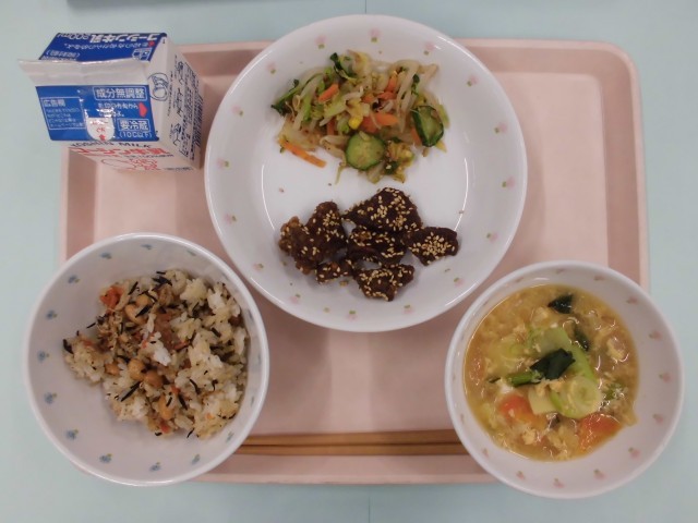 ひじきには、みなさんの歯や骨を作ってくれる「カルシウム」やおなかの掃除をしてくれる「食物繊維」、