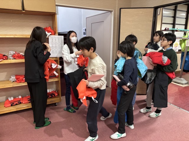 朝食が終わり、スキーー教室に向けて準備を始めています。