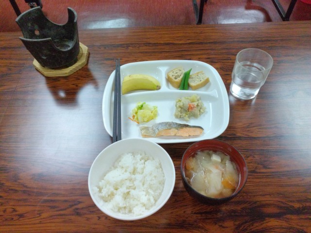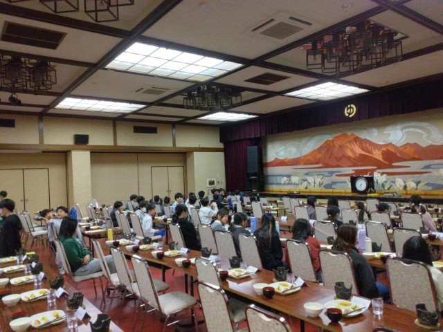 宿舎でいただく最後の食事です。よく噛んで食べましょう。いただきます!