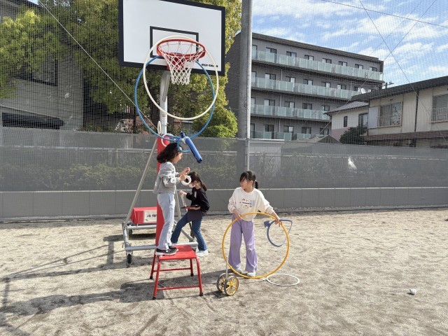 校庭にある影と自分たちで工夫した影を組み合わせて、様々な形をつくりました!