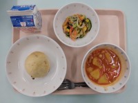 11月7日の献立は、・手作りぶどうパン・チリコンカン・ひじきのサラダ・牛乳です。...