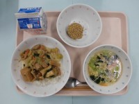 11月10日の献立は、・家常豆腐丼・小松菜とたまごの中華スープ・さつまいものごま...