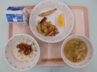 11月11日の献立は、・ごはん・鉄火みそ・わかさぎのから揚げ・五目きんぴら・豆腐...