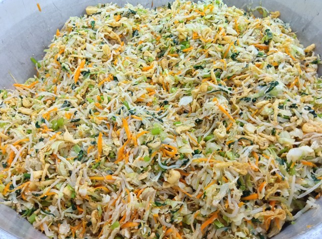 カリカリ油揚げとキャベツのごま和えは、油揚げをオーブンでカリカリに焼き、キャベツやにんじん・小松菜などと和えました。