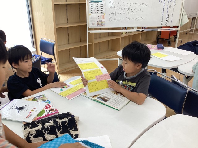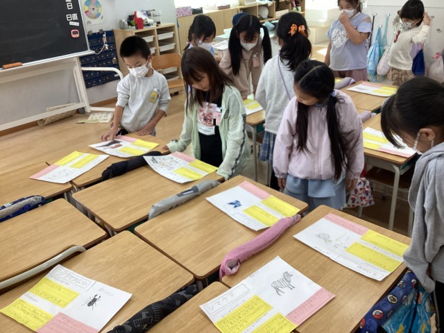 初めての調べ学習でしたが、調べたい内容を本から見つけ、カードに記入したり絵を描いたりし、一人一人素敵な作品が出来上がりました。