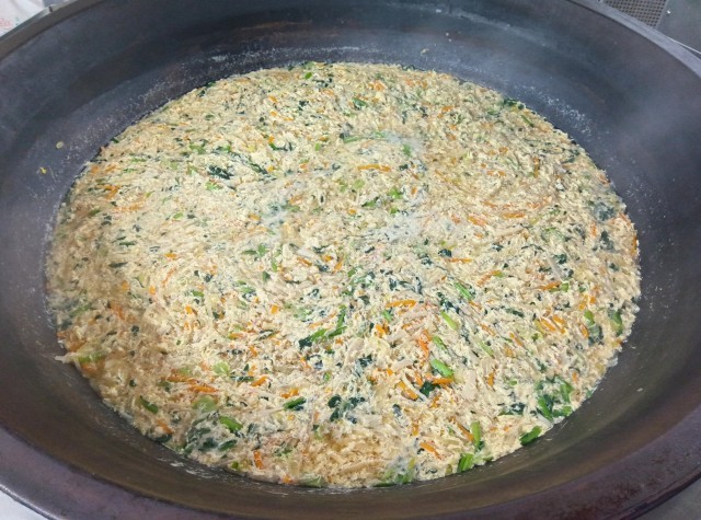 かきたま汁は、千切りにした大根やにんじん・たけのこと、えのきやねぎを煮て、たまごを入れました。