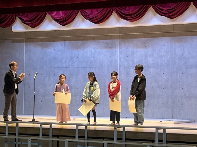 6年生の体育大会で入賞した児童と、読書感想文で学校代表として選出された児童です。