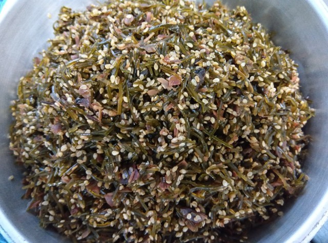 エコふりかけは、だしを取るのに使った昆布とかつお節を、しょうゆやさとうで味つけし、ふりかけにしました。
