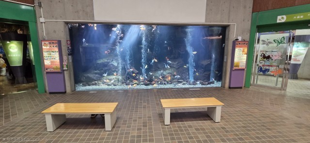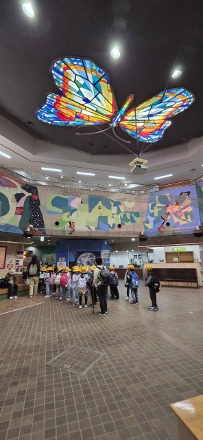 入り口には、金魚の大きな水槽、天井には、チョウの模型があり、とても迫力がありました。