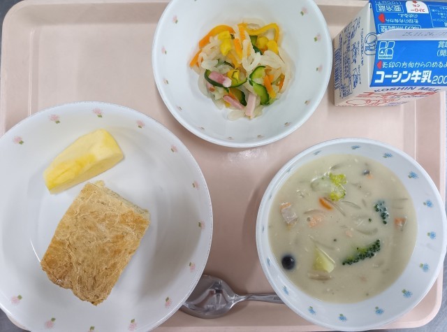 今日の献立は、リエスカ・ロヒケイット・コーンサラダ・りんご・牛乳でした。