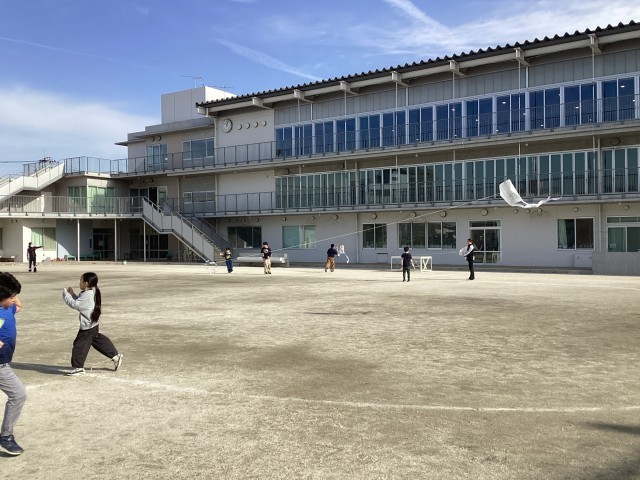 今日の体育の学習では、校庭で凧揚げの活動をしました。それぞれの子供たちが自分だけの凧を、走りながら上手に飛ばすことができました。