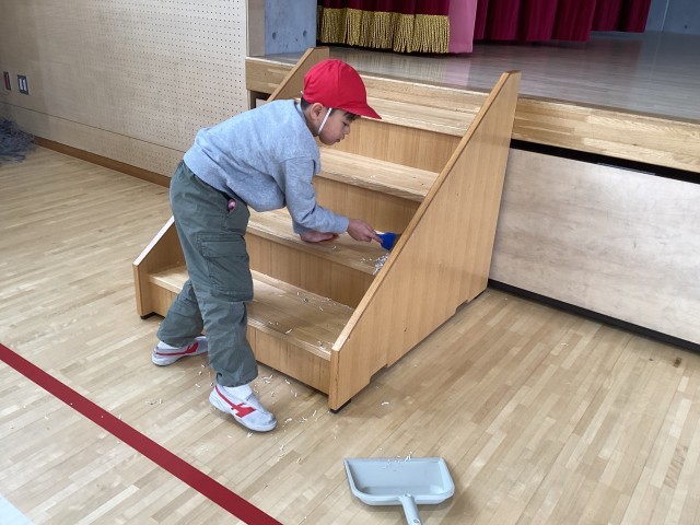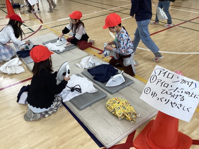 洗濯ほし、アイロンがけ、赤ちゃんのお世話、料理、テーブルセッティング、風呂そうじ、階段そうじの7つを全員が経験しました。お家でもぜひ取り組んでみましょう。
