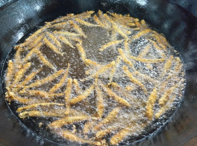 ししゃもフライは、ししゃもにパン粉・パセリをつけて揚げました。