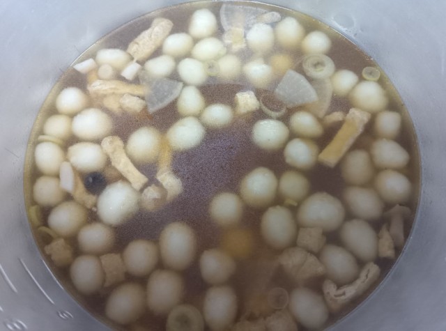 いも団子汁は、蒸してつぶしたじゃがいもと片栗粉をこねていも団子を作り、汁に入れました。