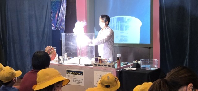 最初の見学先は千葉県にある、現代産業科学館に行きました。サイエンスショーでは、炎の色が変わる実験をしていただき、みんな驚きの連続でした。