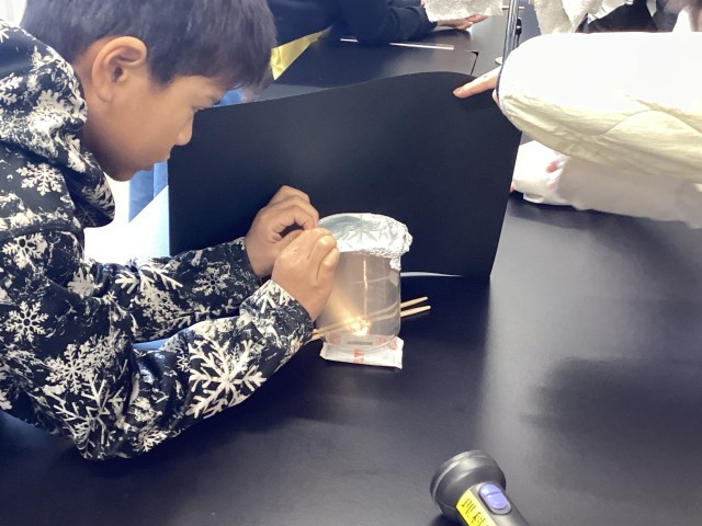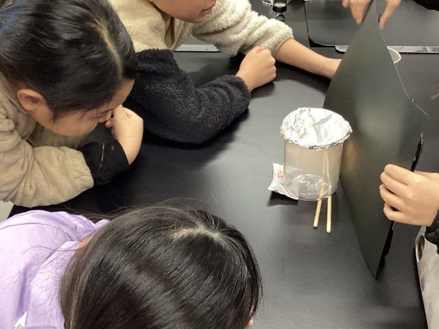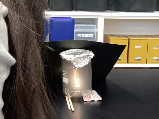 写真は、空気のあたたまり方を調べる実験をしています。