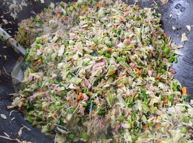 小松菜とキャベツの炒めものは、ベーコン・キャベツ・小松菜・にんじん・ごまなどを炒め合わせました。