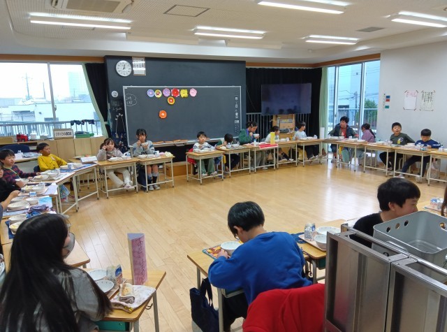 今日は、お別れ交流給食でした。たてわり班のメンバーで給食を食べました。