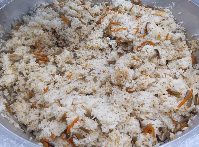 かしわ飯は、ごぼうやとり肉を使った炊き込みごはんです。