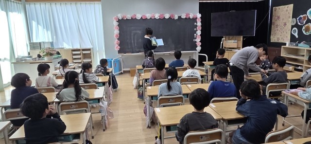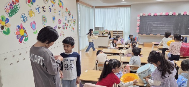 6年生は、入学式の次の日から1年生の教室に行き、朝の準備などのお手伝いをしてくれています。