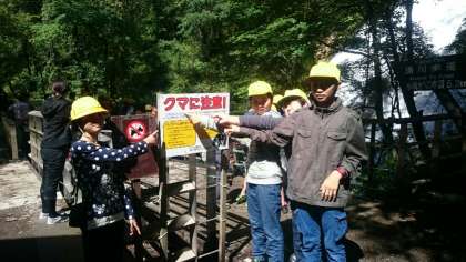 また、熊注意の看板に子供たちは、びっくりしていました。