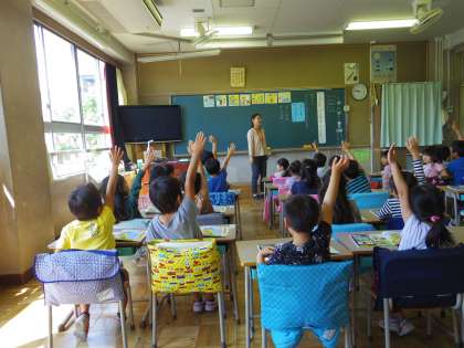1年2組の道徳の授業は、自分の1日の生活について考えました。朝起きてから、学校へ行って帰り、夜寝るまでに、もしやらなかったらどんなことになってしまうのか、きちんと行えばどんなよいことがあるのか、みんなで考えました。自分の生活を振り返り、朝起きてから夜寝るまで、きちんと行うことでよいことがたくさんあることに気づきました。